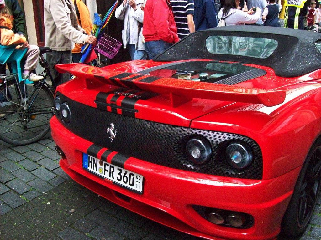 Ich habe mal nach geschaut ich habe bei 2 Ferraris in meiner 30.000 Bilder umfassenden Sammlung Flügel gesehen. Einen Werkswagen von Novitec Rosso, und zwar ein 360 Spider, hat einen kleinen Flügel, und dann einen 355, auch mit einem Flügel, ich werde auch noch mal ein paar Bilder von den Rennversionen posten, den so schlecht sieht sie nun auch nicht aus.