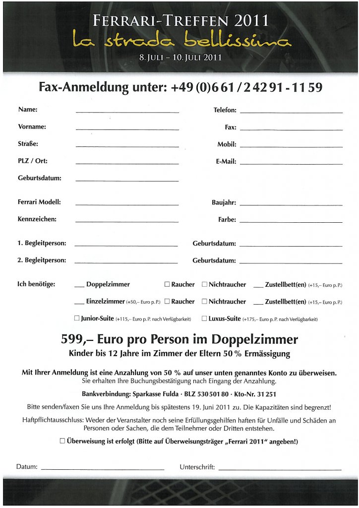 Ferrari Treffen Fulda Hotel Esperanto 08. - 10. Juli 2011