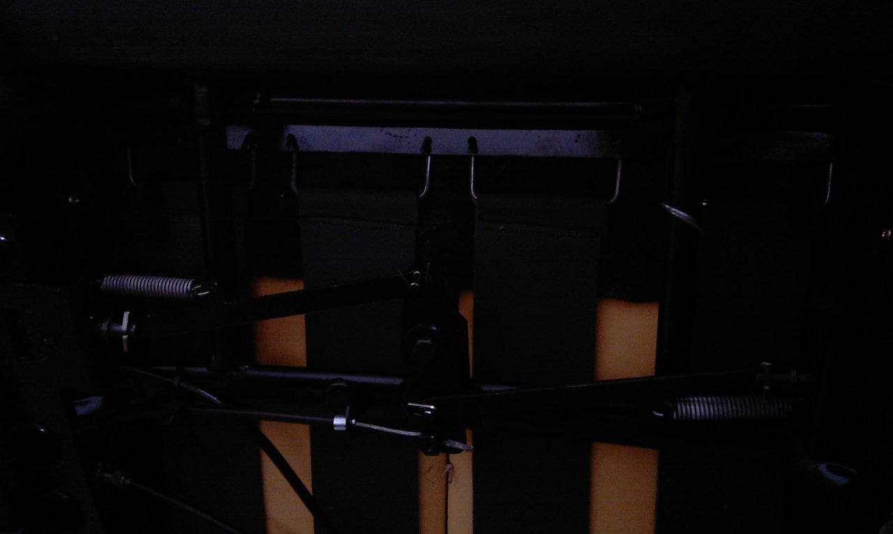 Bild ist leider recht schlecht geworden ... allerdings kann man einen umgebogenen Splint erkennen (silbern) den anderen Splint hab ich zuvor schon entfernt; sind beide entfernt, lässt sich die Lordosenstütze ganz rausziehen ... die "Rohre" zur Befestigung der Stütze haben jeweils nur 1 Loch - also keine Verstellung; evtl könnte man weitere Löcher bohren ... wenn morgen schönes Wetter ist werd ich mit dem Testarossa fahren und mir die Sitze im Auto nochmal anschauen
