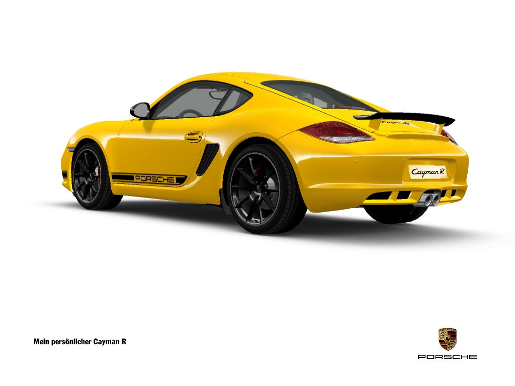 Porsche scheint das Cayman-"R" nicht für "Rennen" zu sehen, zumindest wird es im offiziellen Prospekt nicht ein einziges mal in Zusammenhang mit dem Cayman-"R" gebracht.