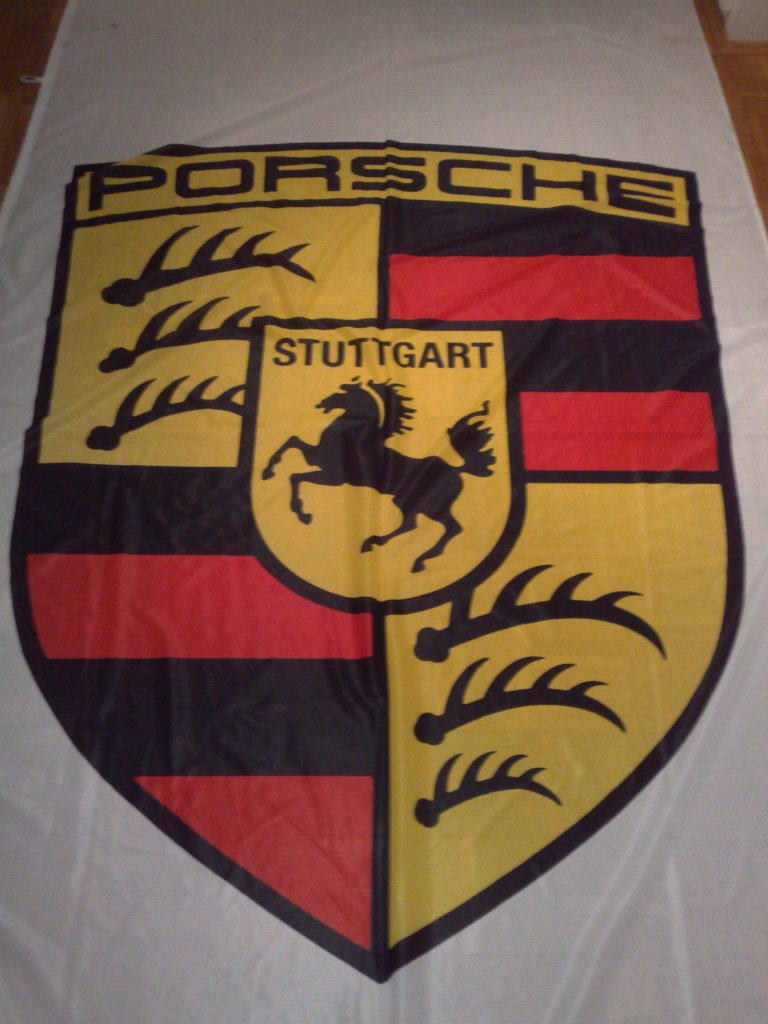Hersteller ist die Firma "Fahnen Herold Wuppertal", die dieses Banner für die Porsche AG anfertigte.