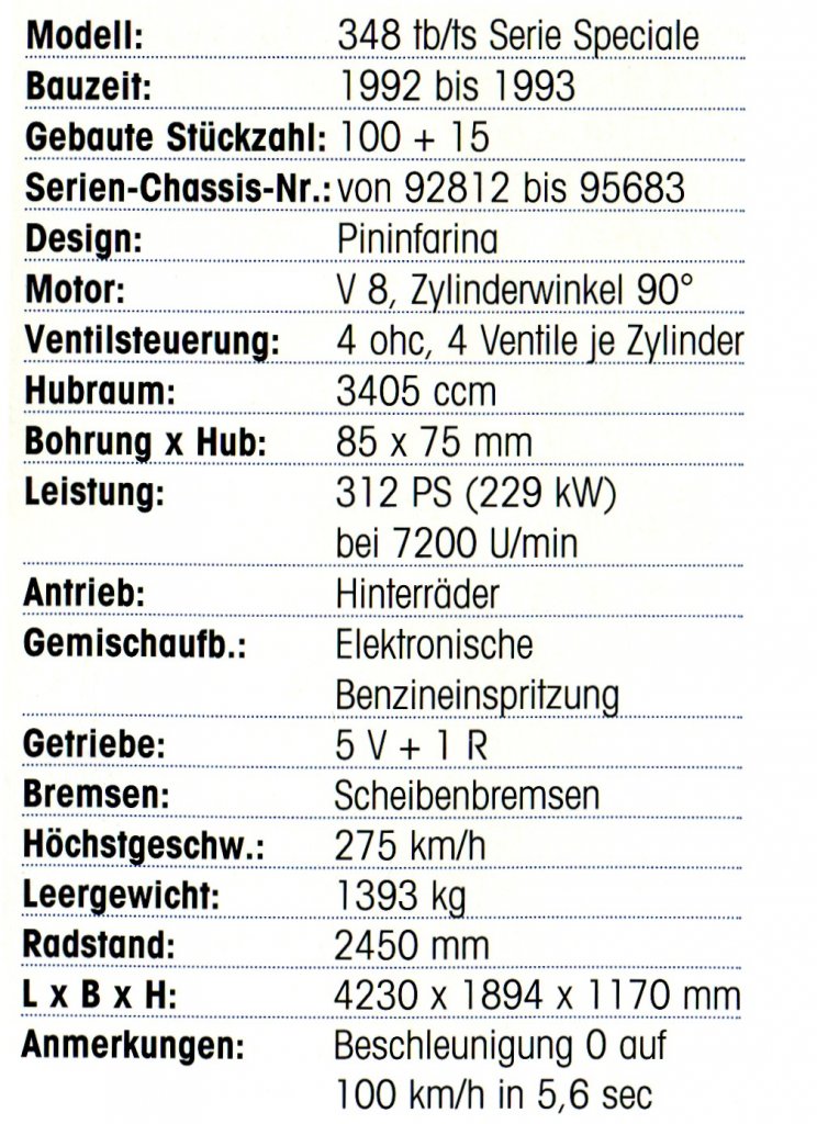 Freunde, nur 1993 wurde zwischen den Fahrgestellnummern 92812-95683 (das sind mehr als 100 ich weiß :-) genau 100 Autos gebaut die die Bezeichnung 348 Serie Speciale tragen, wer weiß mehr darüber ?
