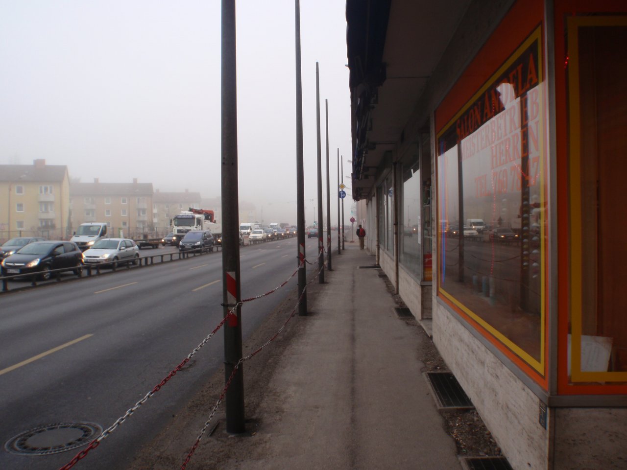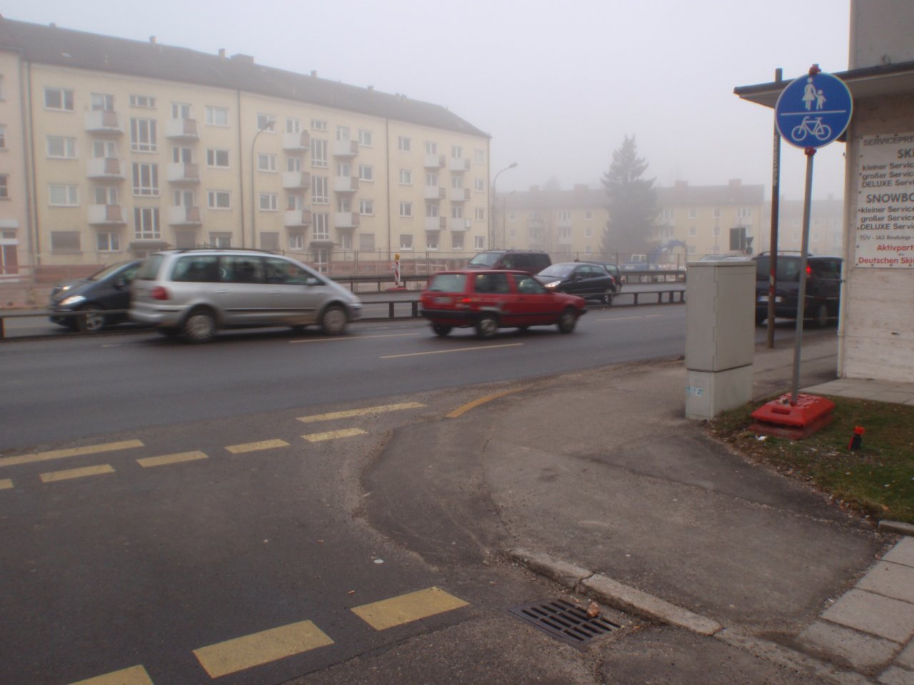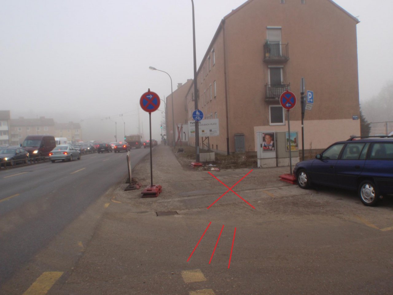 Ich habe mal die Verkehrssituation tagsüber fotografiert (Anhang) und festgestellt, dass beim Einbiegen gelbe Baustellen-Fahrbahnmarkierungen angebracht waren. Dies ist mir nachts bei nasser Fahrbahn und dem Schnee-Matsch-Schmutz auf der Strasse nicht aufgefallen.