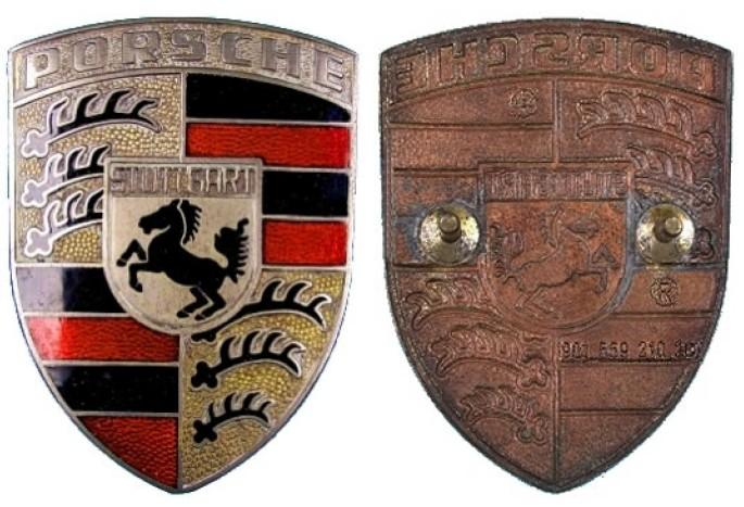 Die ganz frühen Wappen an den Kofferraum-Griffen der Typenreihe 356 waren in ihren Abmessungen relativ klein, sie wurden von 1954 bis 1965 verwendet. Die Porsche-Teilenummer lautet 64455921001. Die allerersten Wappen auf den Kofferraum-Hauben der Typenreihe 911 haben die Porsche-Teilenummer 90155921021, sie kamen von 1963 bis 1973 zum Einsatz.