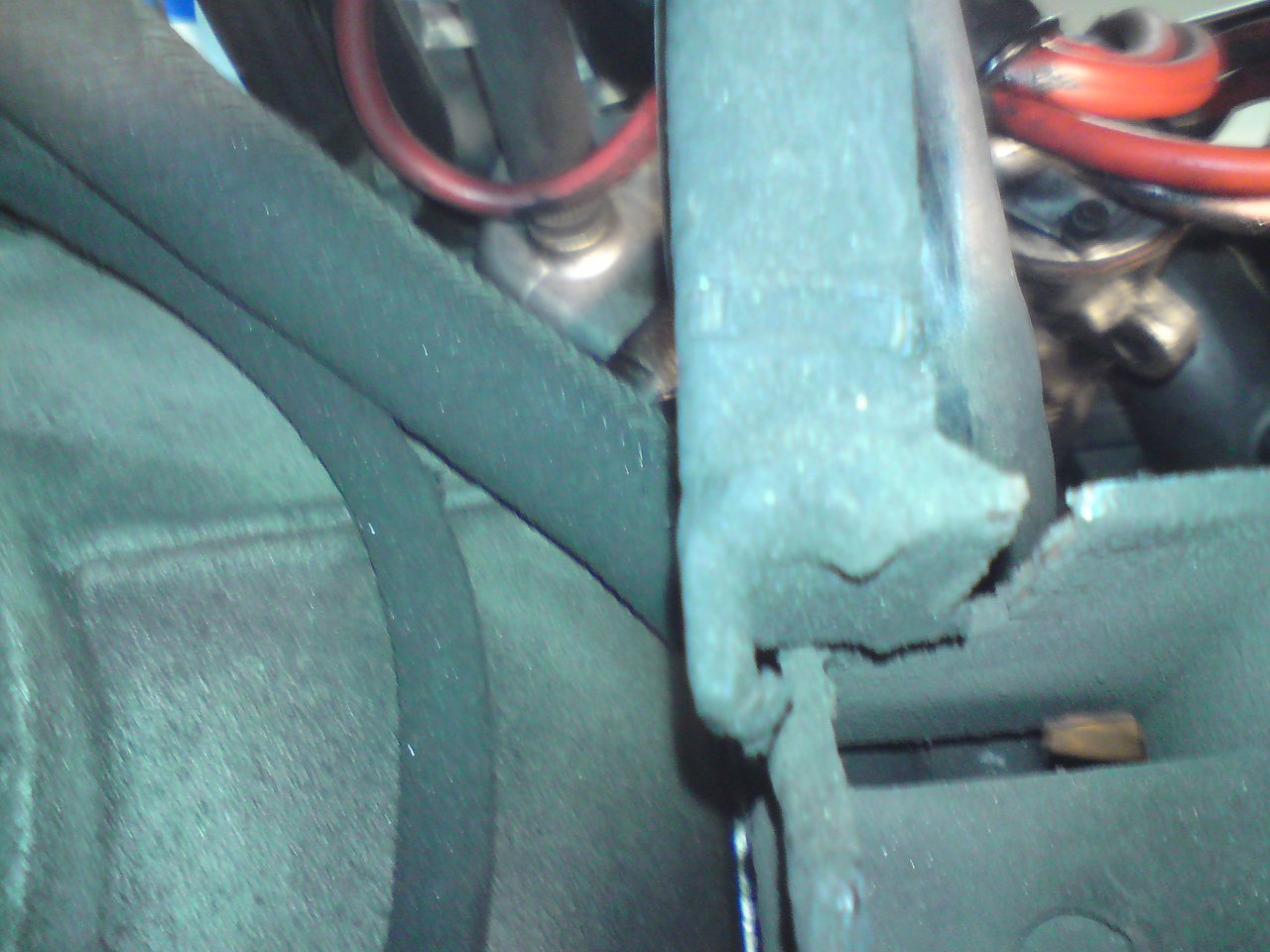 Bei der Demontage fiel mir auf daß eine Strebe im Motorraum HF an der Schweißnaht abgerissen war. Glücklicherweise kommt man da relativ gut dran, so daß ich sie wieder anschweißen konnte.