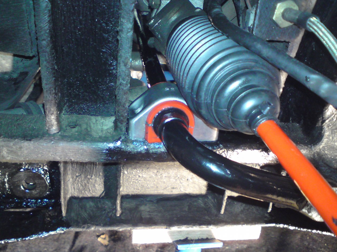 Ich hatte vor der Montage der hinteren Stabistange die roten Gummilager mit Molykote Grease versehen, da ich der Meinung bin, daß an dieser Stelle Reibung auftritt, und wo etwas reibt muß auch etwas geschmiert werden.