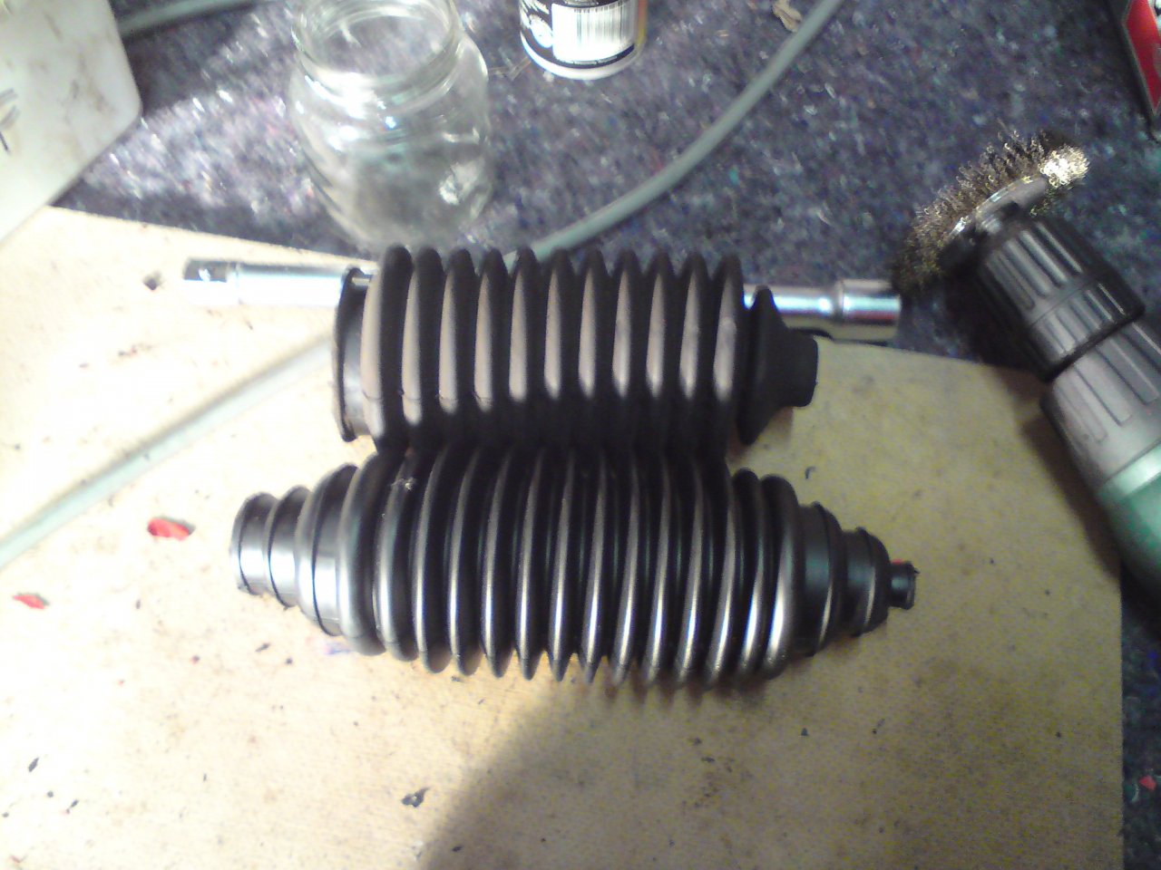 Für die Originalitätsfetischisten, nicht alle Teile sind Originalteile, An den Fahrwerksbuchsen und Gummiteilen konnte ich absolut keine Qualitätseinbußen feststellen, Die Faltenbälge für die Lenkung sind auch nur Universalteile, deren Durchmesser zwar gut passen aber mit Sicherheit keine 27 Jahre halten (wie es die alten taten und immer noch nicht kaputt waren), auch die Befestigung mit Kabelbindern ist nicht jedermanns Sache.