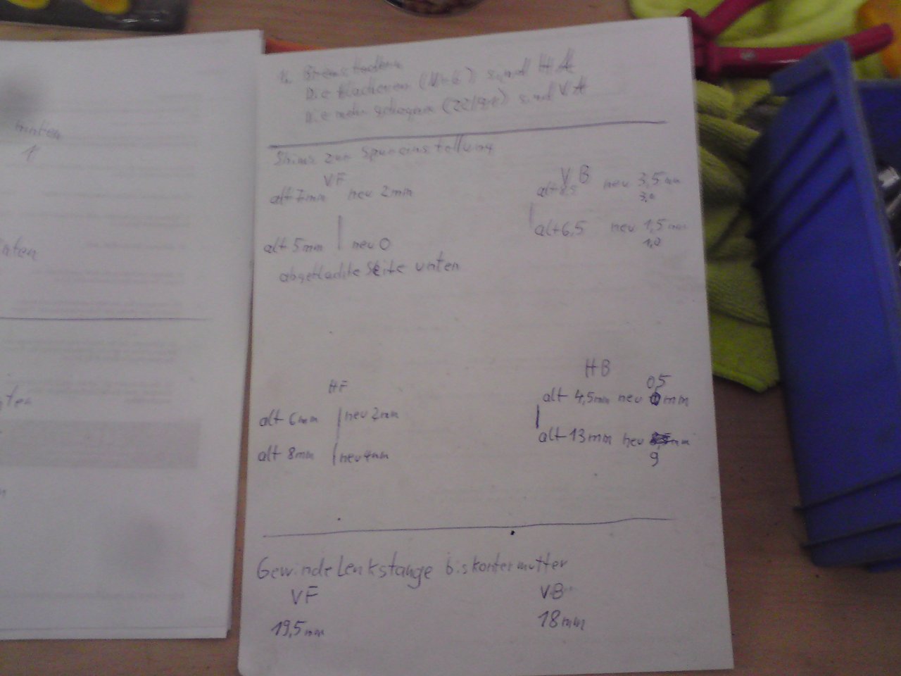 Spurstangenköpfe die genauen Maße zu nehmen und aufzuschreiben.