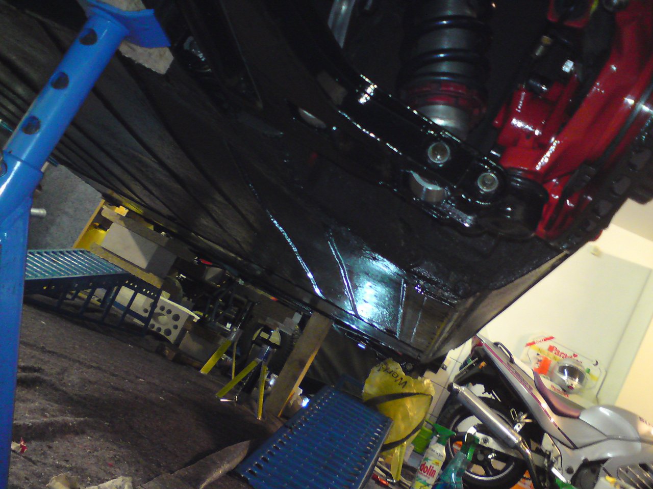 So, gestern habe ich die letzten Schrauben angezogen und bin froh, dass ich fertig bin, auch wenn's Spaß gemacht hat. Nächste Woche kommt er wieder auf die Straße und zur Fahrwerksvermessung.