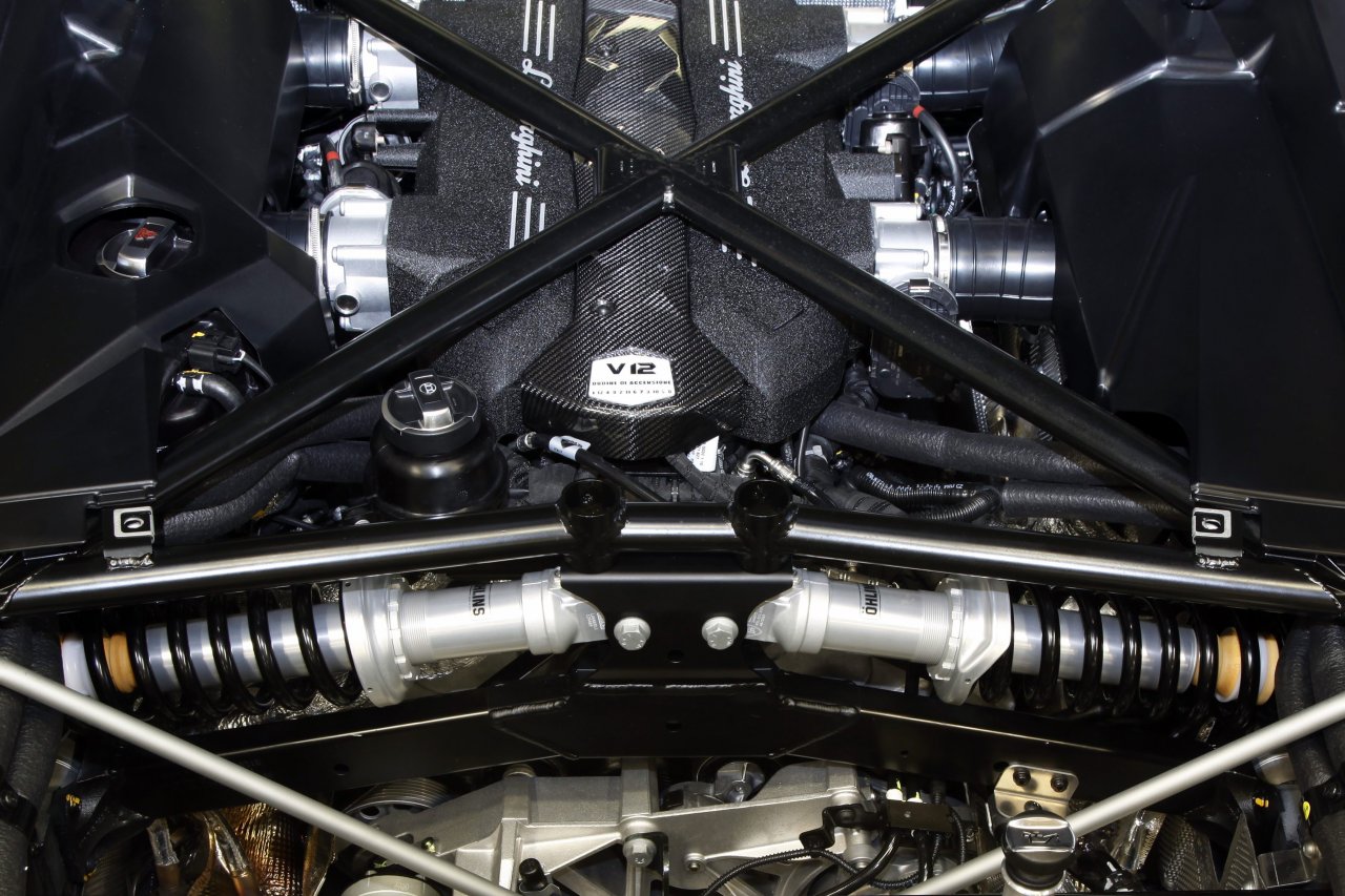 Der neue Lamborghini V12-Supersportwagen, der seine Weltpremiere im März auf dem Automobilsalon in Genf feiern wird, ist mit einem innovativen und hoch aufwändigen Fahrwerkskonzept ausgerüstet. Die Federung und Dämpfung nach dem Pushrod-Prinzip sind inspiriert von der Formel 1 und perfekt für ein Höchstleistungs-Straßen-Automobil abgestimmt. Zusammen mit den Doppel-Querlenker-Radaufhängungen aus Aluminium oder der Kohlefaser-Keramik-Bremsanlage ist dieses Leichtbau-Fahrwerk ein weiterer Baustein im einzigartigen Technologiekonzept des neuen Flaggschiffs der Marke mit dem Stier.