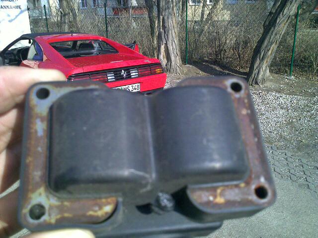 Der rechte Zündverteiler hatte wie auf dem Foto zu erkennen,irgendwann mal ein Überhitzungsproblem.Die Ursache hierfür ist vielfältig,am ehesten kommen hierfür nicht ordentlich verlegte Zündkabel in Betracht.Diese werden nun gesondern abgeschirmt.