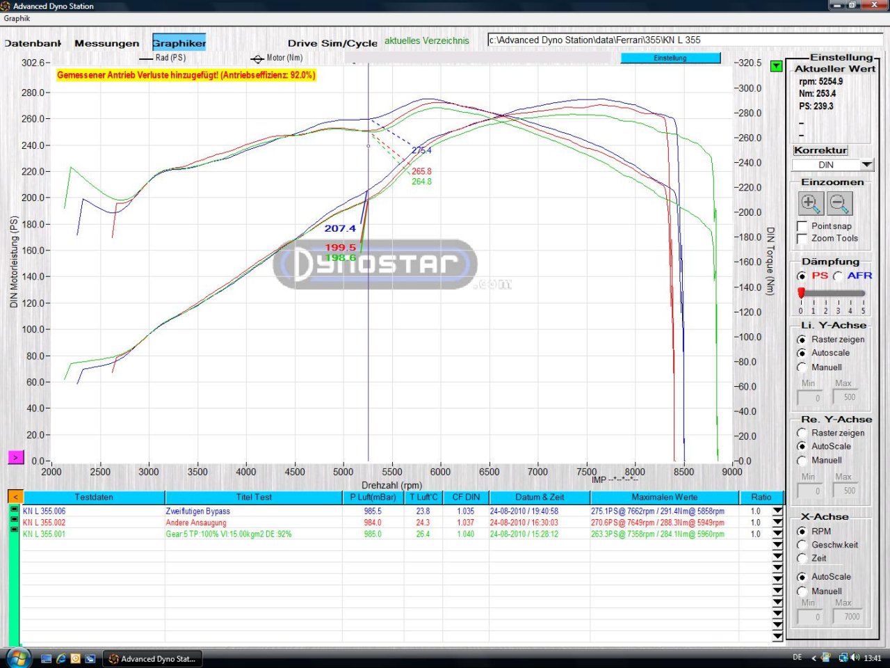 Kurve 1 ist serienzustand die anderen umgebaut, man hätte beide versuchen müssen andere Luftfilterkasten und zweiflutigen Bypass, um zu sehen was die Kombination bringt.