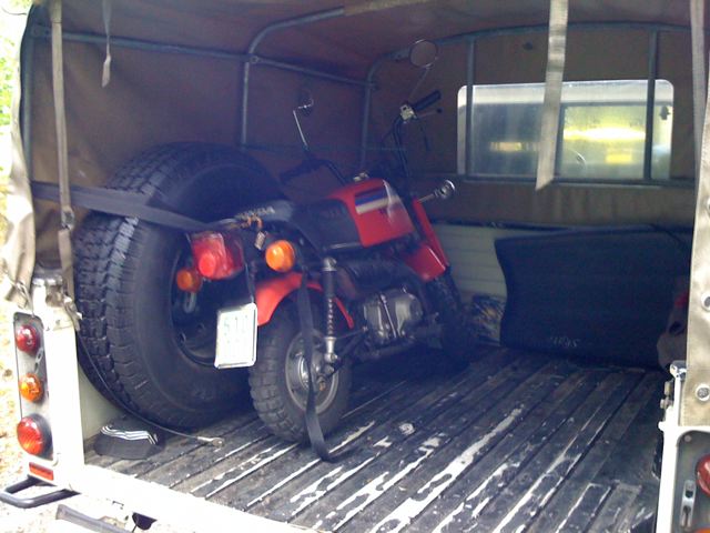 Die Monkey, die seit letztem Frühjahr nicht gelaufen ist, aufgeladen, verzurrt und in die Werkstatt gebracht.