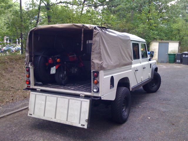 Der Defender ist ein 130 Crew Cab, zehn Personen bekommt man auf der Pritsche nicht unter, aber acht müßten passen, wir müssen das dringend ausprobieren! Bringst Du die Wüstl mit?