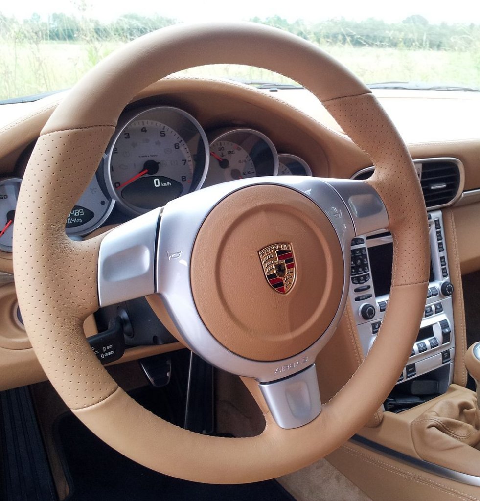 Nun zum 911: als 6 Jahre altes Automobil mit hellem Leder hat der Innenraum einiges durchlitten, was sich optisch durchaus und schonungslos niederschlug. Natürlich die üblichen Verdächtigen: die äußeren Sitzwangen durchscheuert und angebrochen, die Rückenteile der Vordersitze mit Dellen und Druckstellen, das Lenkrad abgegriffen, der Schalthebel durch Ringfinger mit erheblichen Schäden, an den Türverkleidungen schälte sich zart die Lederfarbe ab etc. etc. - all dies natürlich "nur nach meinen Begriffen" - meistens rief der 911 eher die Bemerkung "Der ist doch neu?!" hervor. Aber ich stelle da andere Ansprüche, man wird mich hierorts sicherlich verstehen. O:-):wink: