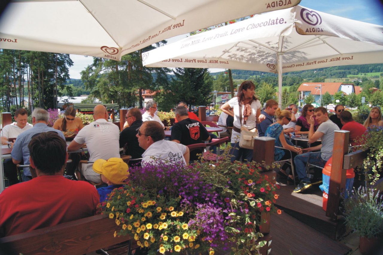 Stärkung bei Kaffee und Kuchen, Eis und kühlen Erfrischungsgetränken.