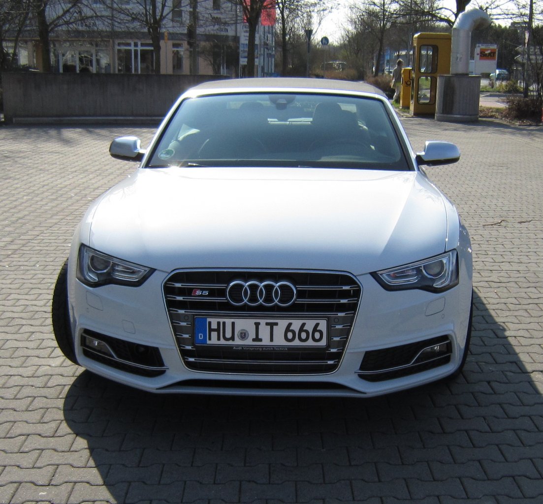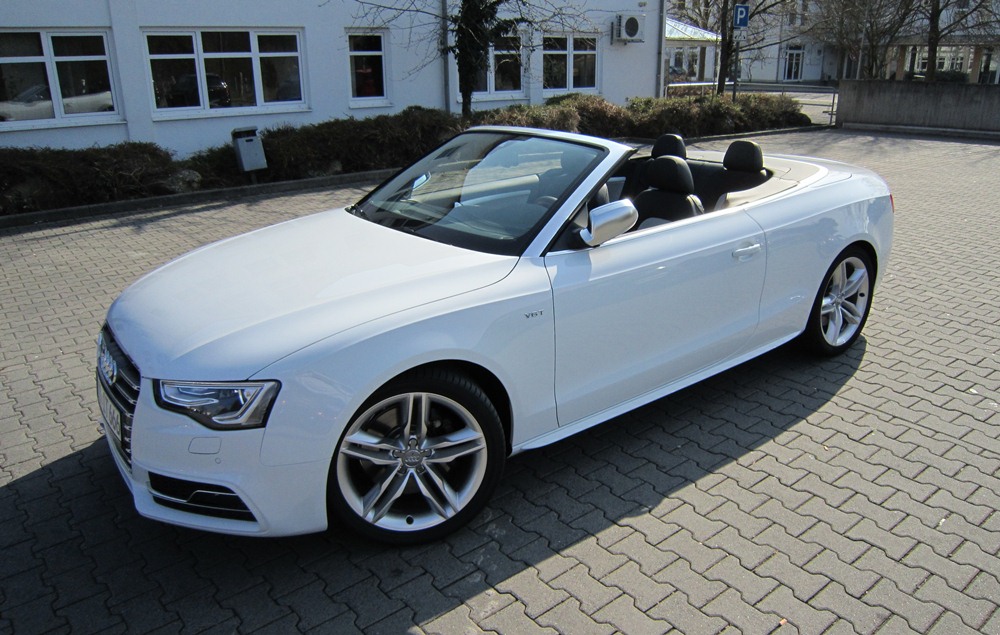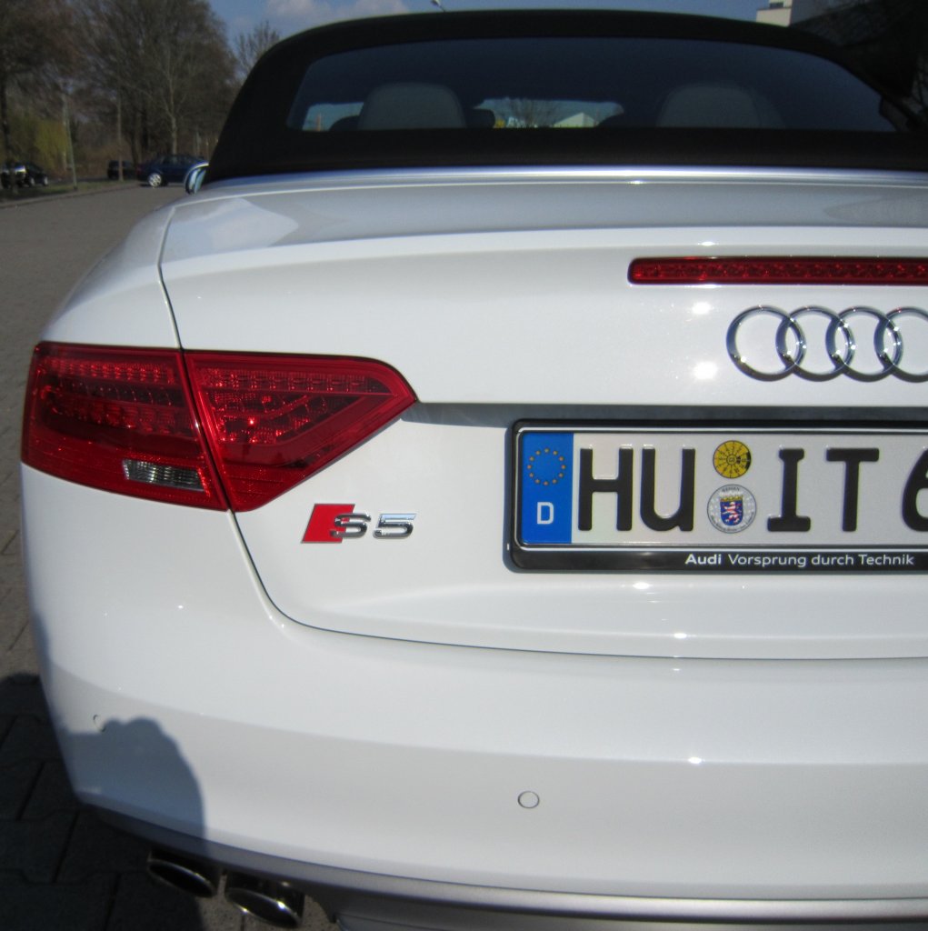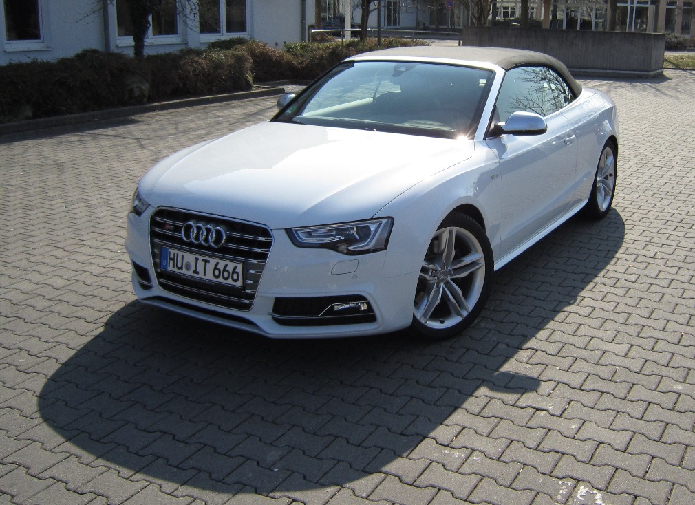 Man muss ja auch mal sehen was für Motoren bei dem Wagen zur Auswahl standen. Der 1.8er geht gar nicht, der 2 Liter wäre OK gewesen, war aber zum Zeitpunkt der Bestellung nicht so lieferbar wie von mir gewünscht, der normale 3 Liter hat sich vom Geld her nicht gelohnt, da er in meiner Konfig. auf S5 Niveau gewesen wäre. Ein Diesel kommt für ein Cabrio nicht in Frage. Insofern musste es der S5 werden.