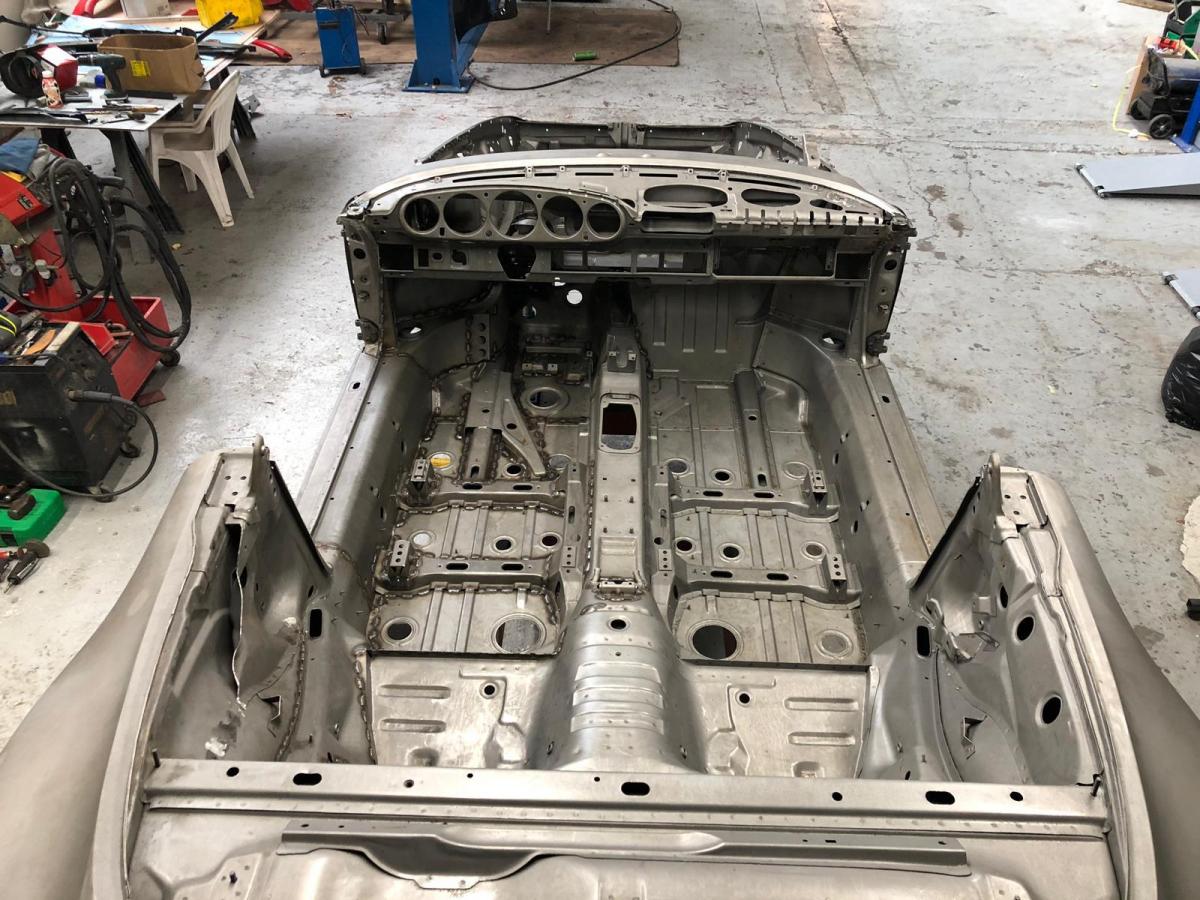 die Karrosserie ist bereits geschweißt und kommt gerade aus dem e-coating zurück.
