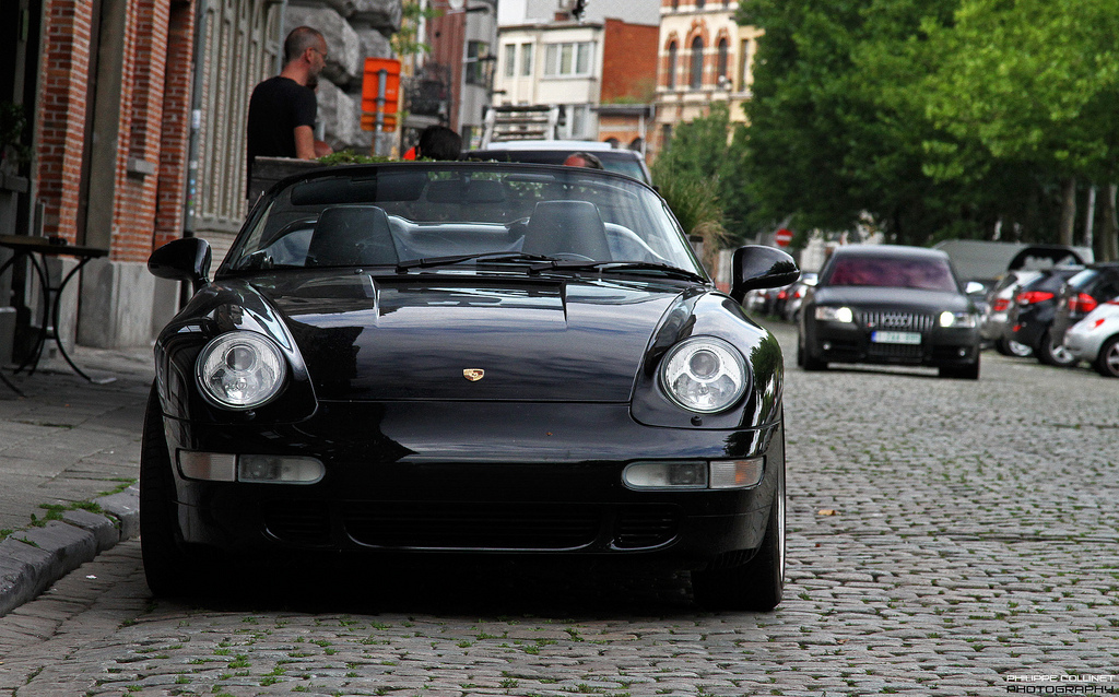 Die turbo-breite Nr. 24 ist noch eine recht junge Entdeckung, bislang sind mir nur diese zwei Bilder bekannt. Abgesehen davon, daß die Farbe schwarz dem 993 Speedster einfach richtig gut steht erkennt man auch hier an der Position der hinteren Bremssättel sowie dem Endrohr die G-Modell-Basis. Außerdem hat er noch den Verdeckdeckel und die Sitze vom G-Modell.