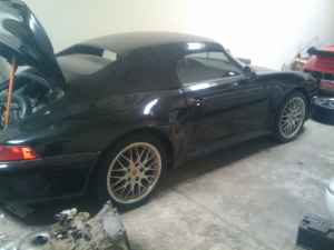 Grundsätzlich ist dieses Auto nicht häßlich, mit den selbst gebauten Stoßfängern, den gebastelten turboS-Lufteinlässen und dem fehlenden Softtop entfernt es sich aber doch deutlich vom Optimum.