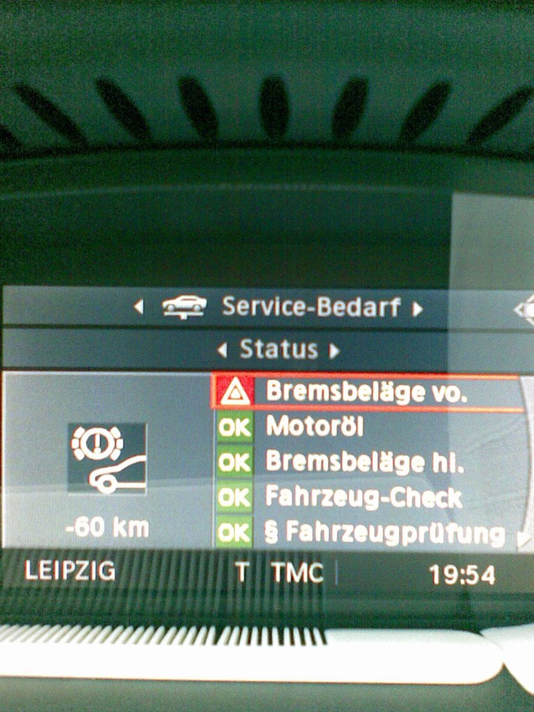 Gestern hat mich mein 5er mit der Meldung überrascht, dass die hinteren Bremsbeläge in 1100km fällig sind (Sichtprüfung folgt). Der KM-Stand liegt dann bei gigantischen 29.000 km.