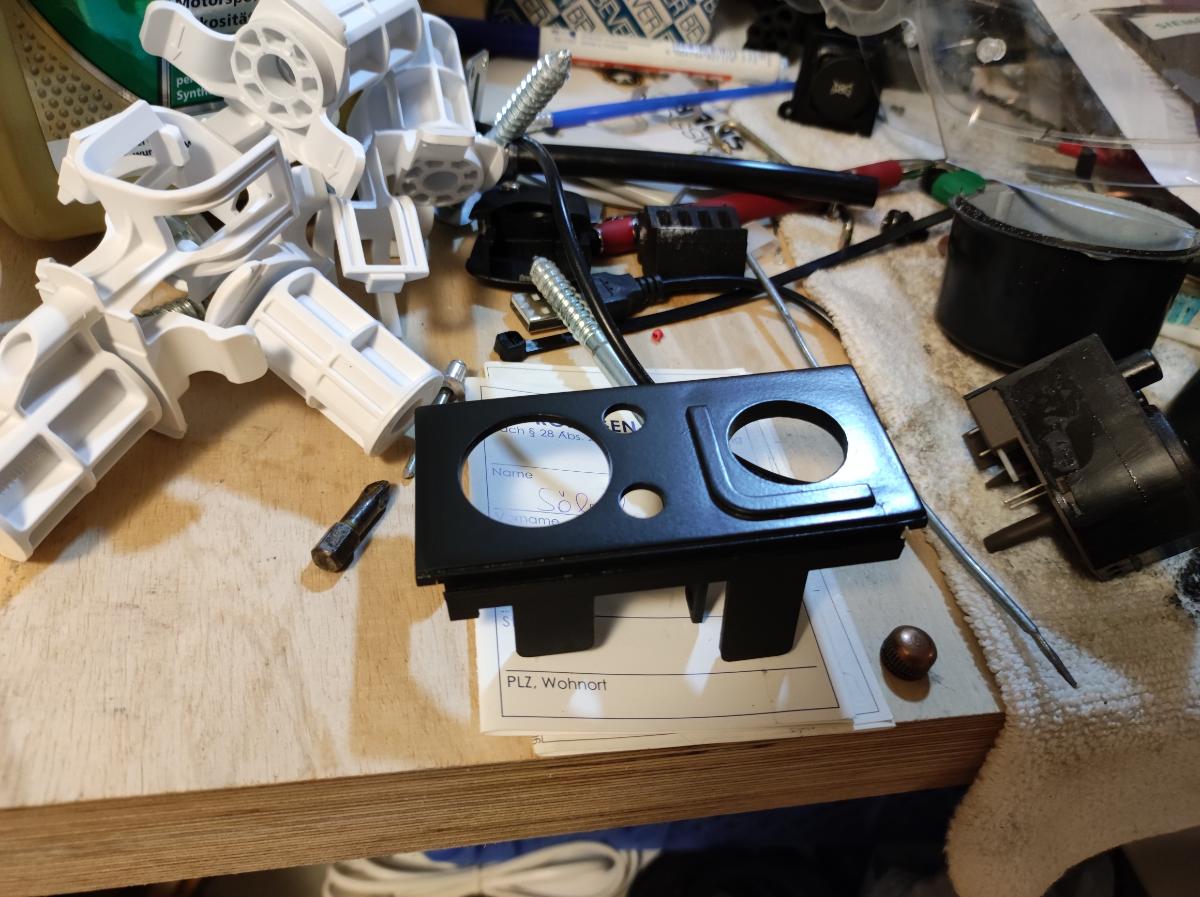 Denn auch die große vordere Schalterplatte kommt neu. und muss da ja drüber gefädelt werden.