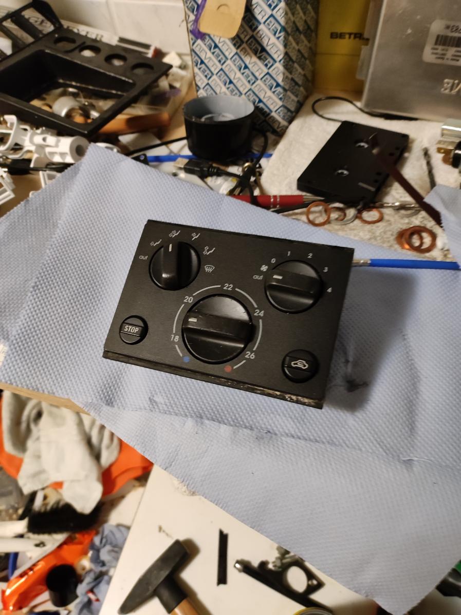 Alle Schalter auch einzeln mit Isopropanol gereinigt.das vordere Tastenfeld und der Aschenbecher sind neuware.das Klimabedienteil war schon Mal "gemacht" worden.es ist ein farblicher kleiner unterschied.aber ich bin sehr froh darüber wie es jetzt ist.die Klima Schalter (Drehregler) waren am schlimmsten zu reinigen.