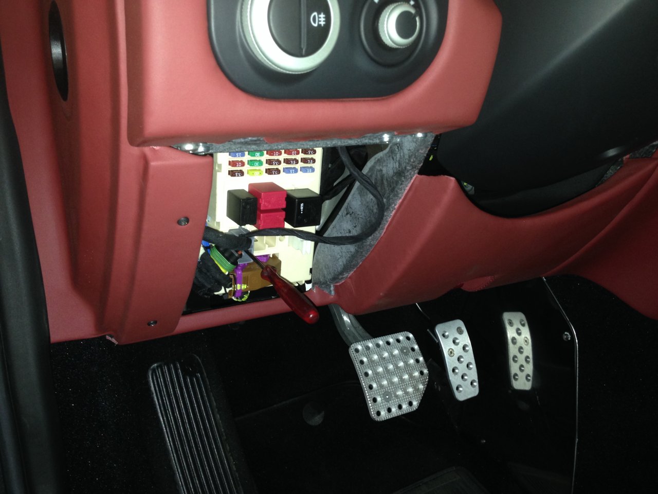 Unter Armaturenbrett L Sicherungskasten aufmachen (Zwei Kunststoffschrauben)