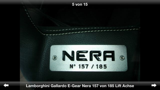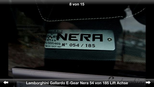 Serienmäßig wird der 520 PS starke Lamborghini Gallardo Nera mit den Ausstattungsfeatures Navigationssystem, Rückfahrkamera, Bordcomputer, Alarmanlage, Lifting-System und einer maßgefertigten Fahrzeugabdeckung ausgeliefert.