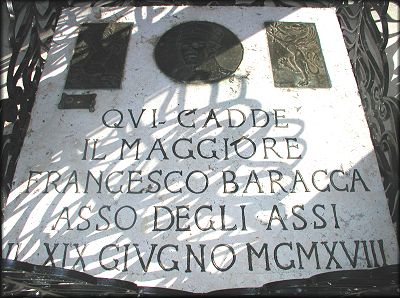 Interessante Info`s bez. Baracca, welche nicht in jeder Ferrari Literatur ersichtlich ist. Ein italienischer Ferrarista hat mir das Monumento Baracca (angeblich) unweit seiner Absturzstelle (Nervesa) gezeigt, welche wir bei der diesjährigen Club Ausfahrt besucht haben.