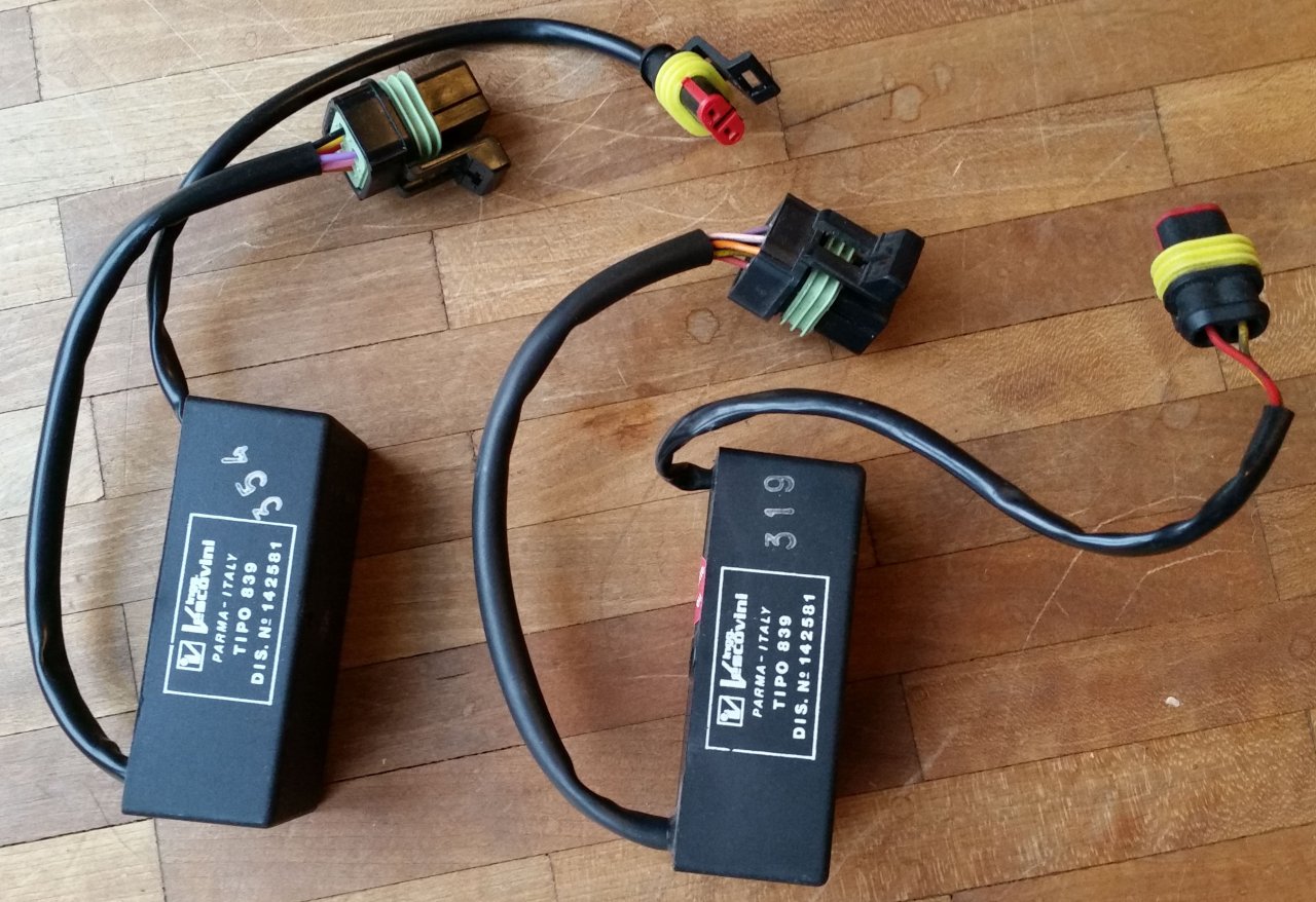 Das "sagenumwobene" lila Kabel verbindet die Vescovini-Katsteuergeräte mit dem Wegfahrsperreneingang der Motronic. Wenn du das kappst, bleibt die Funktion der SlowDown-Warnleuchten intakt. Kappe es nur, wenn du sicher bist, daß die Vescovinis spinnen, und nicht einfach mal so, wenn die SlowDown angeht.