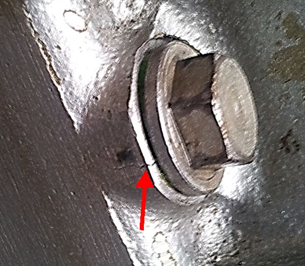 Der Riß kam wohl durch früheres zu festes Andrehen der Ölablaßschraube zustande, auch war hier ein neues Gewinde geschnitten worden.