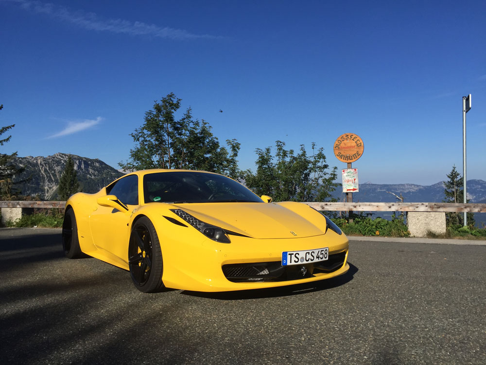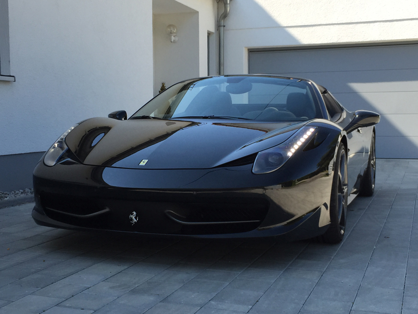 Bei der F458 Spider Suche ist mir dieser flotte Flitzer positv aufgefallen. Allerdings hat der Erstbesitzer hier relativ rustikal den vorderen Nummernschildverstärker mit zwei Schrauben ohne Gnade in die Spider Schnauze rein geschraubt. :crazy: