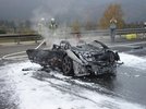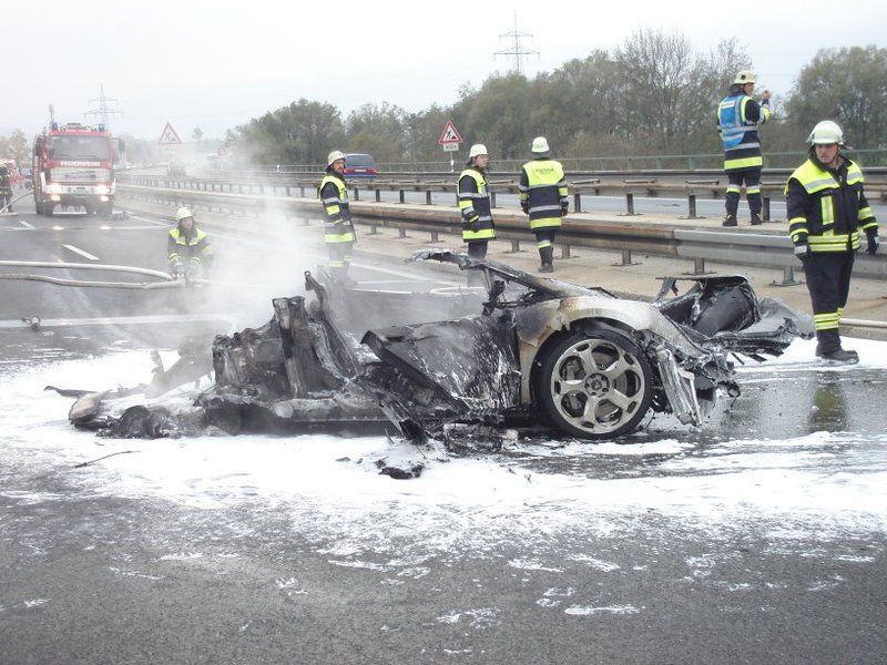 So wie es aussieht ist die Kiste nach dem Crash ausgebrannt, da bleibt, je nach Dauer des Feuers, halt nicht viel übrig. Vom Auto wird vor dem Brand noch mehr als genug übrig geblieben zu sein sonst wäre da keiner lebend rausgekommen.