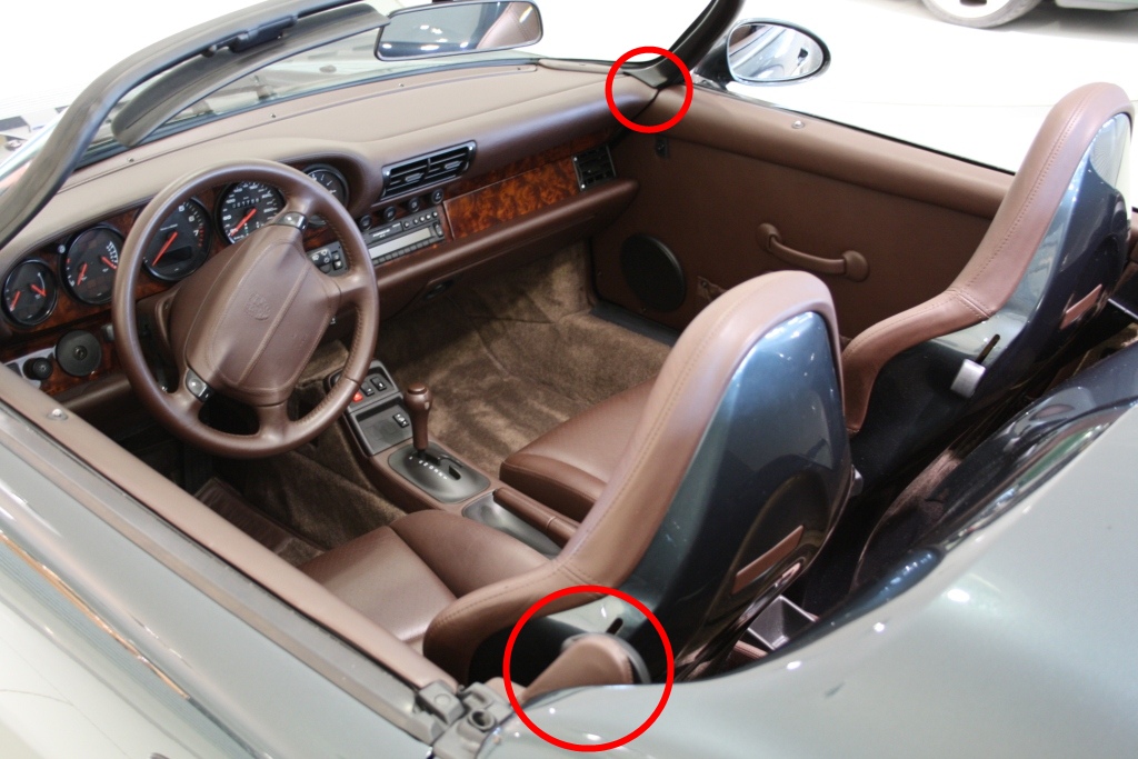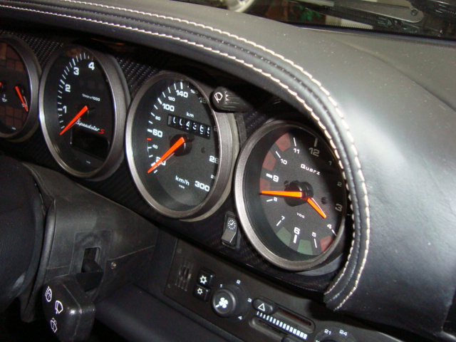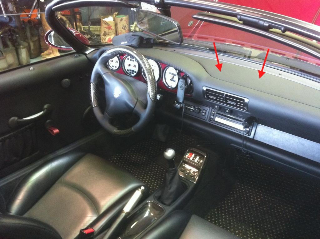 Ein besonderes Thema ist dabei das Armaturenbrett. Das Speedster-Armaturenbrett stammt bekanntlich vom 964, dies ist von der Passform mit dem des normalen 993 identisch - mal abgesehen von den Aussparungen für die Befestigung der Windschutzscheibe.