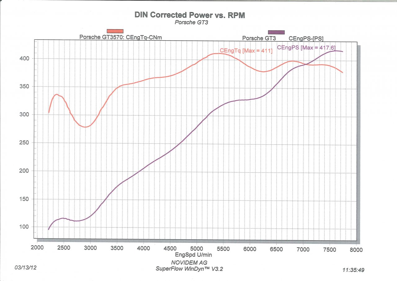 An meinem GT3 hab ich die komplette Abgasanlage von Miltek drauf sowie Sportluftfilter von K&N. Ergebnis: satte 417.6 PS.