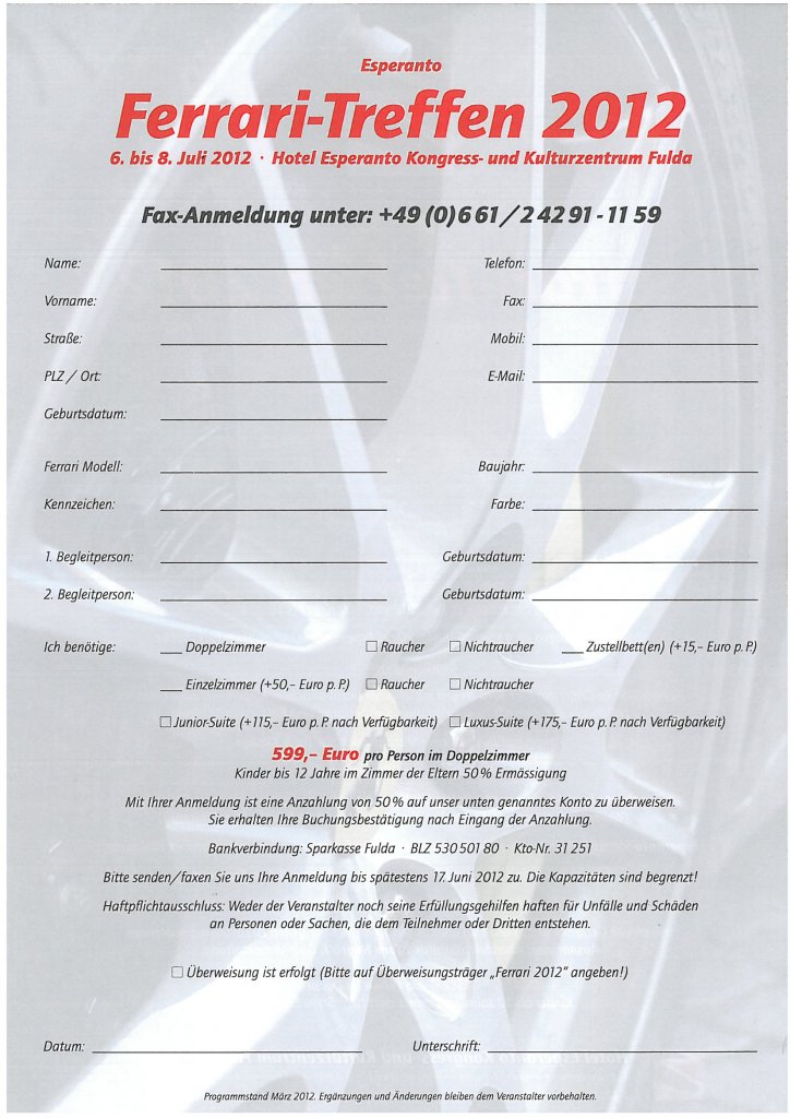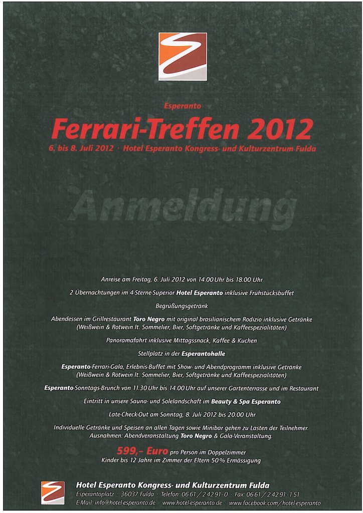Ferrari Treffen Fulda Hotel Esperanto 06. - 08. Juli 2012