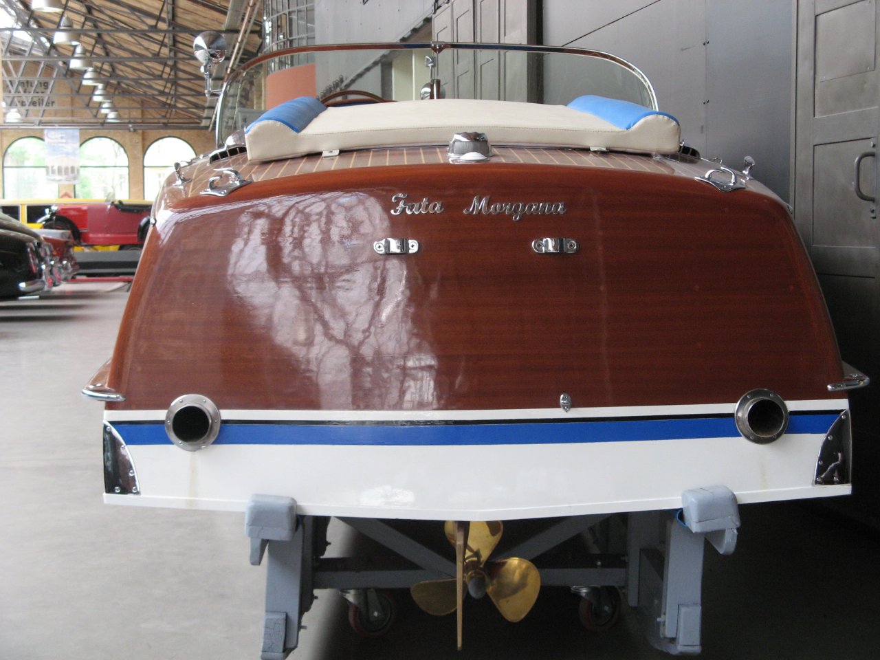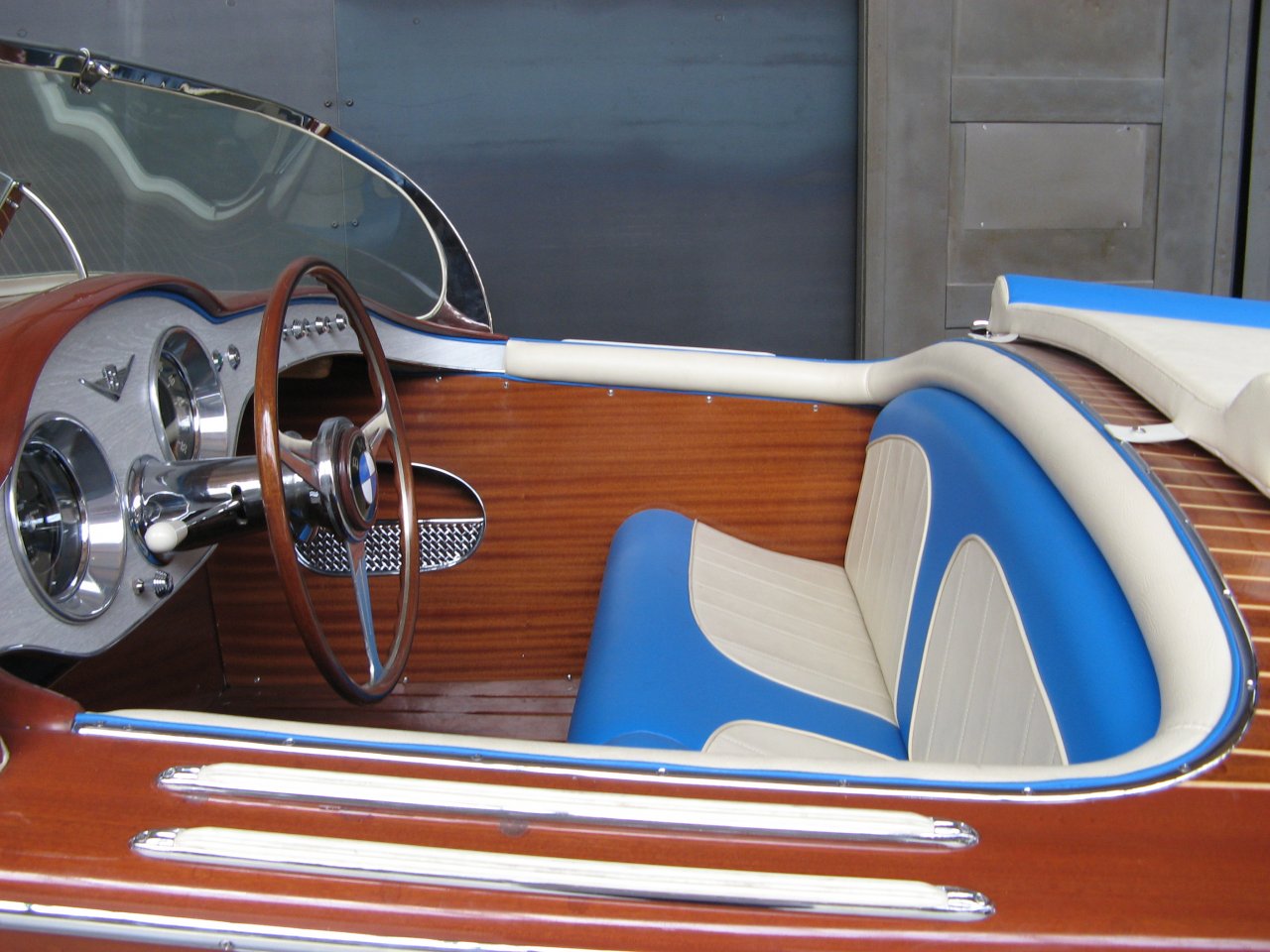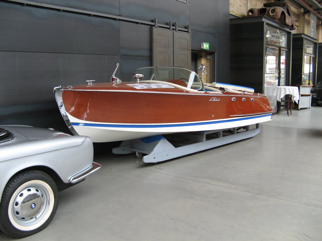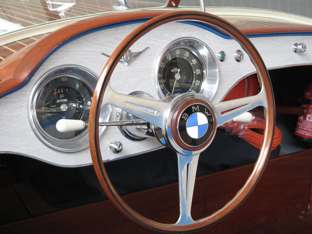Und nun noch etwas schönes für's geschundene Auge. Ein sehr schönes Holzboot eines mir unbekannte Herstellers. Das Herz ist ein 3,2l-BMW-V8, der u.a. auch in den Modellen 503 und 507 zum Einsatz kam.