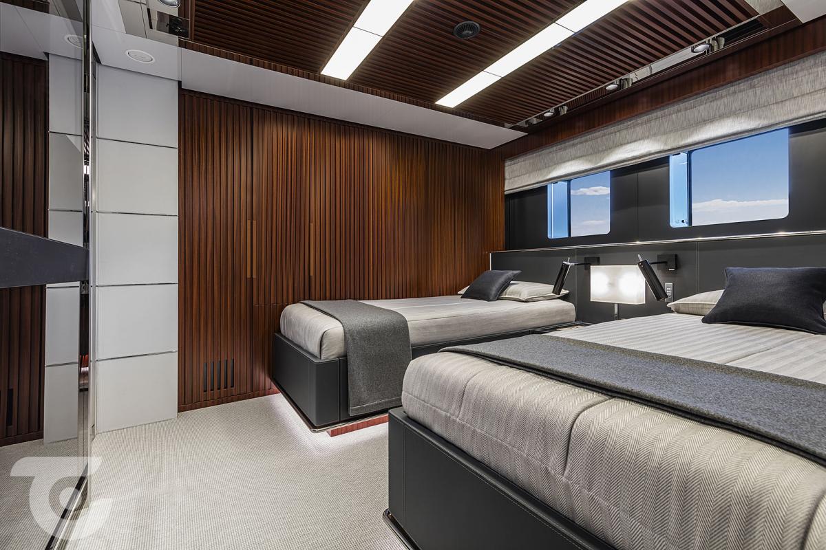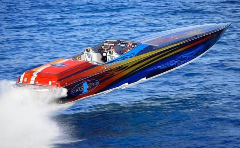Fitted with two Lamborghini Engines developping 750 Bhp each, offering a maximum speed of 90 Knots.