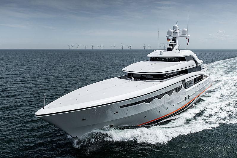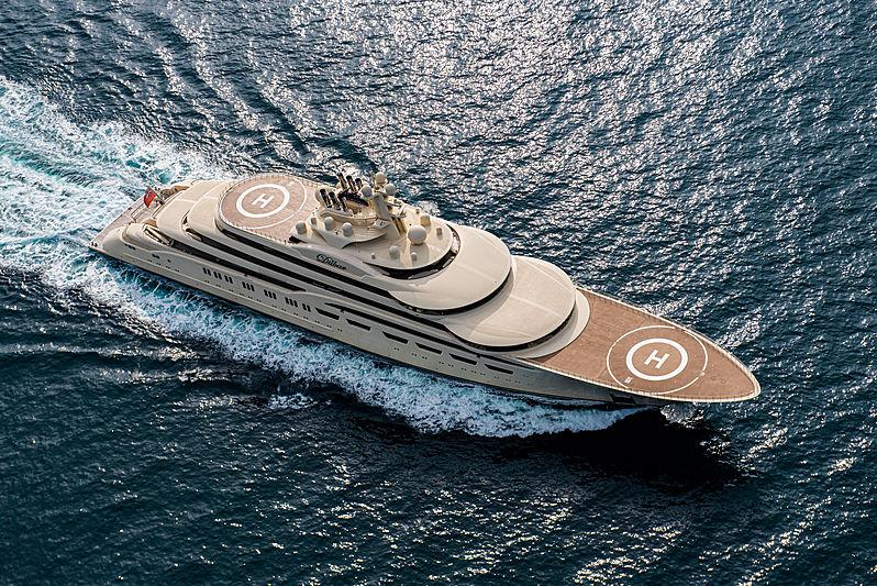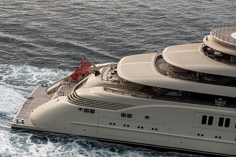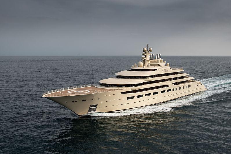 168 m Dilbar auf dem Weg zum Refit nach Hamburg.