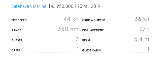 sowas kommt nie auf den markt, die safehaven nutzen nur die ganz harten rauhwetterfahrer im offiziellem einsatz. wer also 1,95 mio übrig hat bekommt ganz sicher ein einzelstück, das auch im hafen von st. tropez (bei kennern) für ein raunen sorgen sollte! das wäre meins, ohne lange zu überlegen.