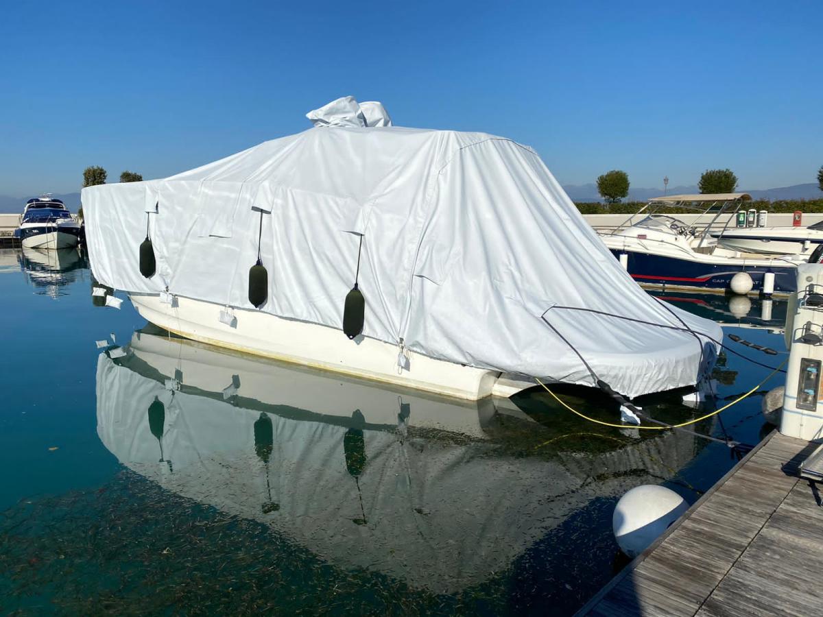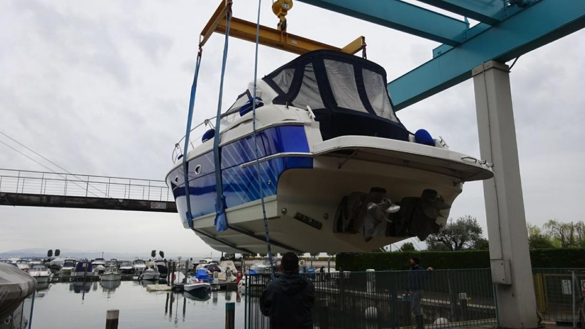 Ja das Boot bleibt immer im Wasser der Gardasse gefriert nicht und in Frühling einmal raus reinigen Service und wieder rein ..