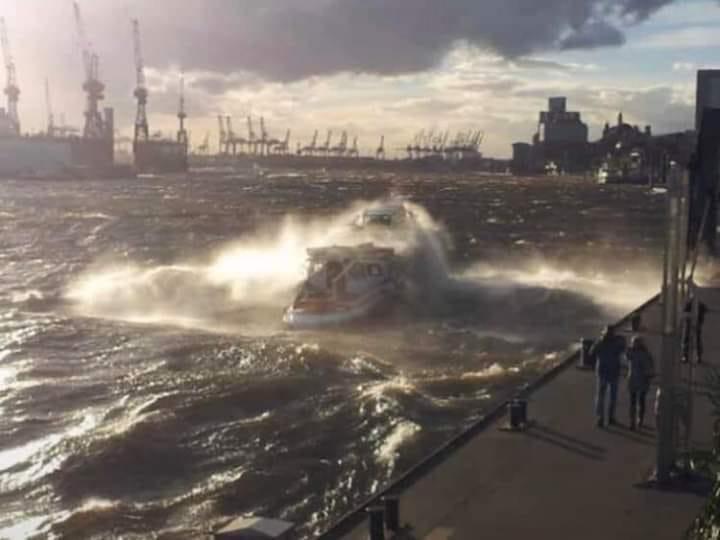 Hafenrundfahrt bei Windstärke 10 in Hamburg.