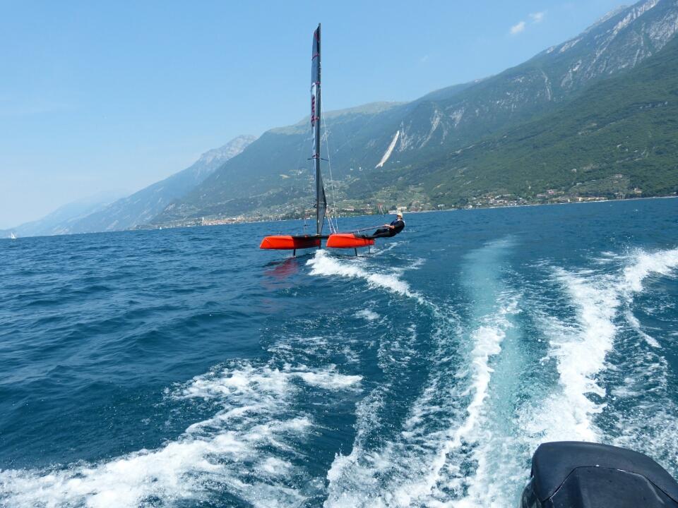 Fliegen auf Catamaranen kann man inzwischen auch privat selbst, z.B. am Gardasee.