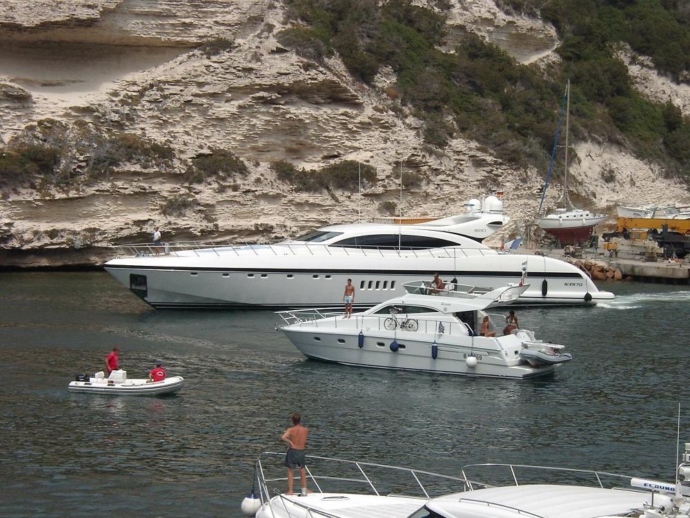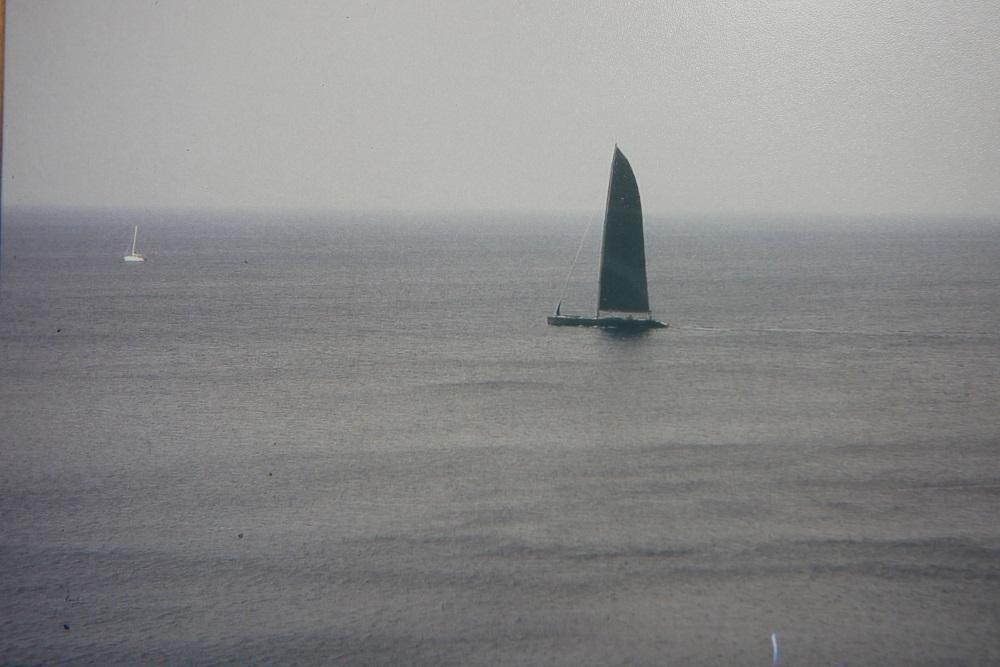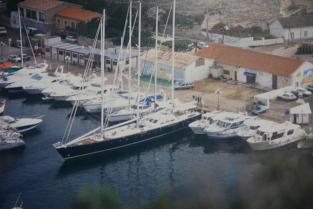 Das zweite Bild zeigt die Stealth vor Bonifacio. Aufgenommen mit einer Nikon und einem 2,8/135 mm Objektiv.  Das war die Segelyacht von Giovanni Agnelli. Damals revolutionär, viele Teile aus Carbon, Design Freres. Beeindruckend die schwarzen Segel aus Carbonfasern. Nach dem Tod von Giovanni Agnelli im Besitz von Lapo Elkann. Zwischenzeitlich verkauft.