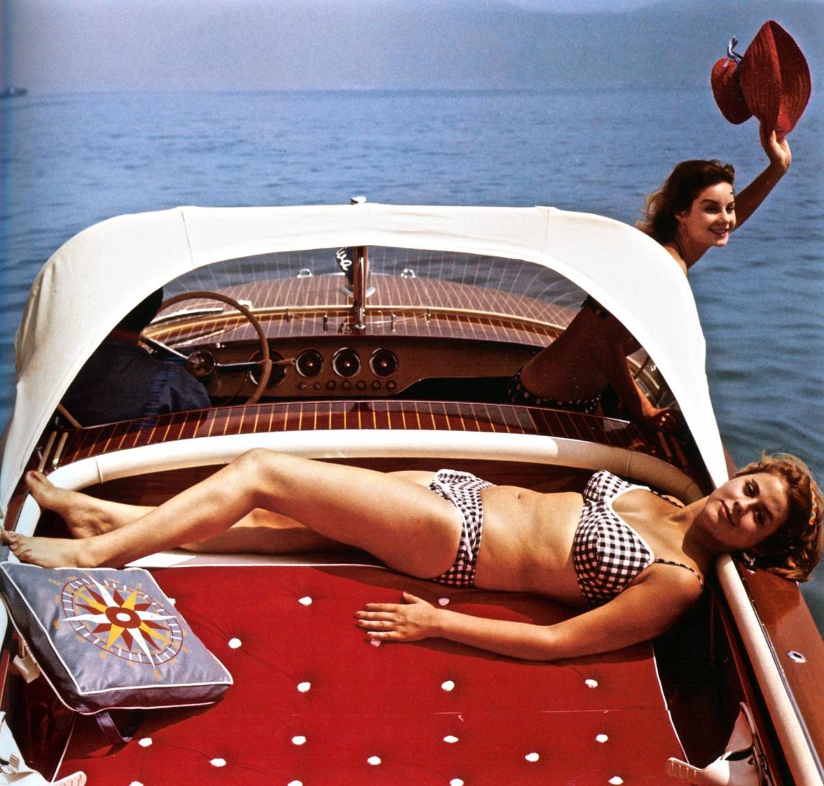 Da muß ich doch gleich ein Photo aus dem Servatius‘schen Urlaubsalbum von 1966 herauskamen, unser altes Riva-Boot auf dem Comer See mit meinen beiden Großcousinen Eliza und Christina zu Grünenthal-Ründeroth, das war ein schöner, unbeschwerter Sommer, damals in Norditalien, später, nachdem mein Vater die nur sehr bedingt erfolgversprechende Idee entwickelt hatte, das Familienvermögen in eine Trakehnerzucht in Neuseeland zu investieren, fuhren wir nur noch an die Nordseeküste, wo ich dann Herrn Remo kennengelernt habe, und hatten ein Schlauchboot auf dem Ratzeburger See...