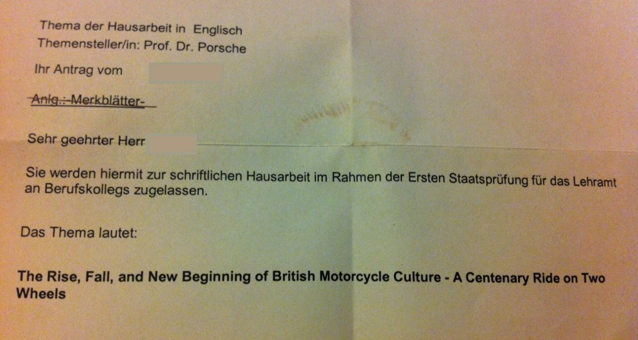 Fehlt nur noch die Examens-Arbeit, bei der ich großes Glück hatte den Professor meiner Wahl von meinem Wunsch-Thema überzeugen zu können.