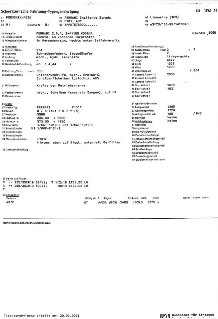 Die Frage könnte ja auch sein, ob die Abgasanlage überhaupt eingetragen werden muss ? sie hat ja anscheinend eine Betriebserlaubnis, da sowohl der CS, als auch einige Modena und Spider original damit ausgeliefert wurden. Und so wie ich das bisher verstanden habe, gibt es keinerlei Vermerke in den Papieren bei solch einer Originalauslieferung.