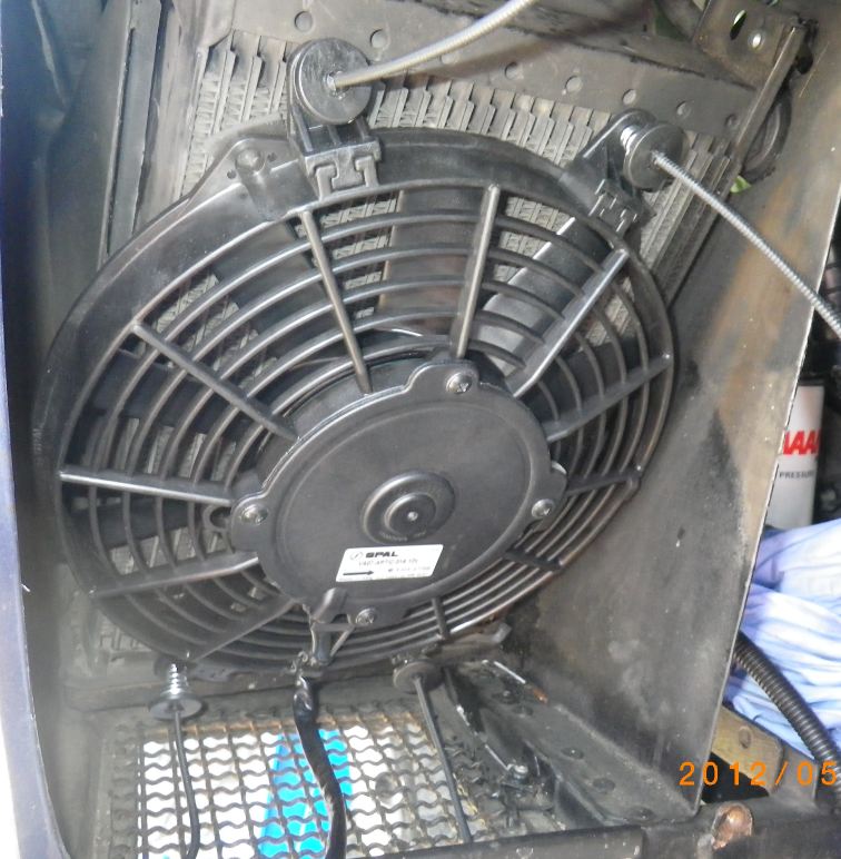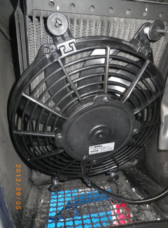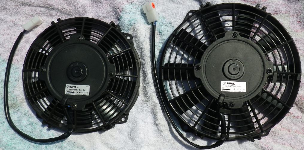 Den SPAL-Kühlerventilator VA07-AP7/C-31A habe ich jetzt durch den SPAL-Kühlerventilator VA07-AP12/C-58A (1060m³ saugend D247-D225 T=52) ersetzt.