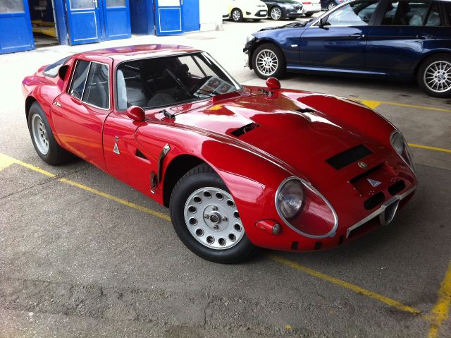 Müsste der Alfa Romeo Giulia TZ2 sein. Bei nur zwölf gebauten Exemplaren ein seltenes Vergnügen, sowas vor die Linse zu kriegen :-))!